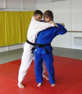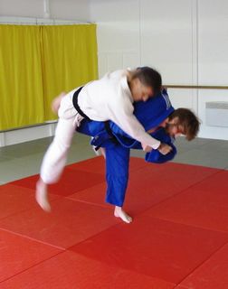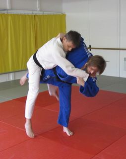 Le foto proposte mostrano le sequenze da eseguire per compiere questa micidiale tecnica. Dapprima mi avvicino a uke tirando la sua manica e il suo bavero contro di me. È importantissimo che sia lui a venire contro il mio busto e non viceversa: se così non fosse il judoka squilibrato sarei io! Contemporaneamente allo squilibrare, entro nella sua posizione facendo inizialmente un piccolo passo col piede destro, poi eseguo un rapido “piede scaccia piede” dove avanzo con il piede sinistro e sollevo la gamba destra per colpire l’interno coscia di uke. Da notare che il braccio che stringe la manica deve tirare verso l’alto, come se si volesse staccare uke da terra. La gamba che colpisce l’interno coscia deve andare molto in alto. Un ultimo particolare sta nel piede sul quale si sta in equilibrio: per una perfetta esecuzione l’equilibrio si deve trovare sulla punta dei piedi.