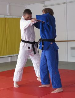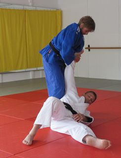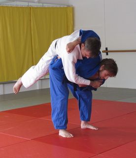 Dalle fotografie potete notare che il primo gesto da eseguire è il tirare con le braccia uke verso di me, rialzandolo lievemente. Successivamente ruoto nella sua posizione avvolgendo il mio braccio attorno al suo collo e iniziando a piegare le gambe. Dopodiché mi piego e carico uke sull’anca, staccandolo dal tatami. Se l’esecuzione viene eseguita correttamente, allora uke verrà scaraventato al suolo senza tanti complimenti. Ricordate sempre di controllare la caduta del vostro compagno.
