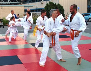 Sul tatami si sono prodotti: i bimbi del corso di introduzione al judo (6 e 7 anni) che hanno alternato esercizi preliminari e proiezioni, il gruppo dei ragazzini (8-10 anni) che hanno dimostrato dei pregevoli passaggi al suolo, i pre-agonisti che hanno espresso il meglio del loro tandoku-resho (allenamento senza compagno), il gruppo adulti amatoriale che ha saputo farsi apprezzare per la dimostrazione di parte del Kodokan-goshin-jitsu (una forma di difesa personale), il gruppo dei giovani che non fanno competizione (11-16 anni) ed il gruppo dei giovani agonisti del programma “DYK 2019” che hanno alternato esercizi acrobatici di allenamento a proiezioni più impegnative e passaggi al suolo.
