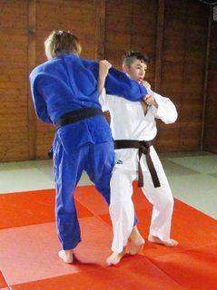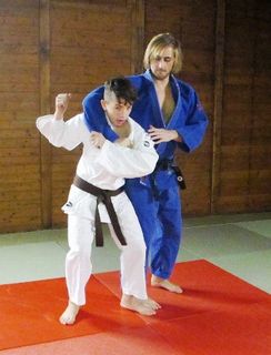 Mattia Frigerio (2° dan judo e monitore GS) ci propone le difese su seoi-nage e dei possibili contraccolpi. Uke Gioele Donato (classe 2004), recentemente promosso cintura marrone, giovane promessa del DYK Chiasso.