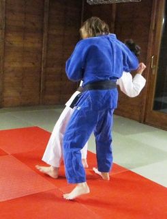 La prima, in applicazione del principio GO, intende bloccare l’attacco opponendo la propria forza a quella dell’avversario. Per tale ragione devo abbassare il baricentro piegando le ginocchia respingendo con l’addome l’azione avversa (foto 1).